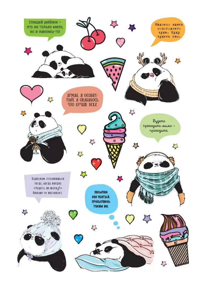 Вас ждет более 450 ярких наклеек с изображениями харизматичного Пандыча, его любимыми лакомствами и фразами, в которых каждый узнает себя или друзей.